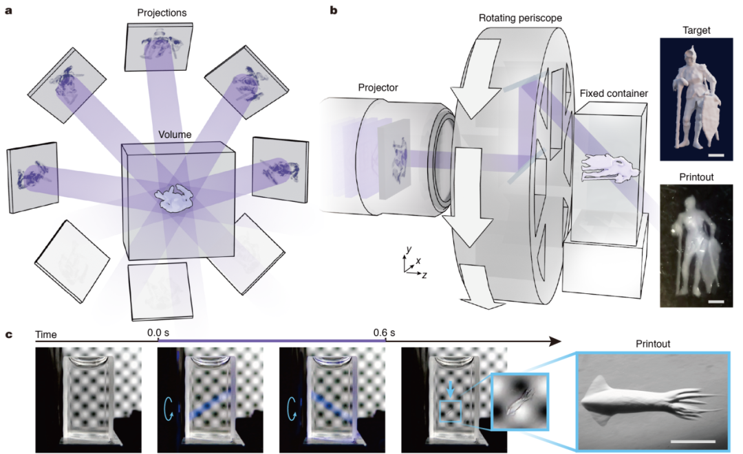 三维打印技术作为科学研究和工业生产的重要工具,其高效率、高精度的性能突破,关系到生物医学、微纳科技等多个前沿领域的发展,但现有的三维打印方法,如逐点打印、逐层打印、体积打印均存在较为突出的“速度和精度”的矛盾。